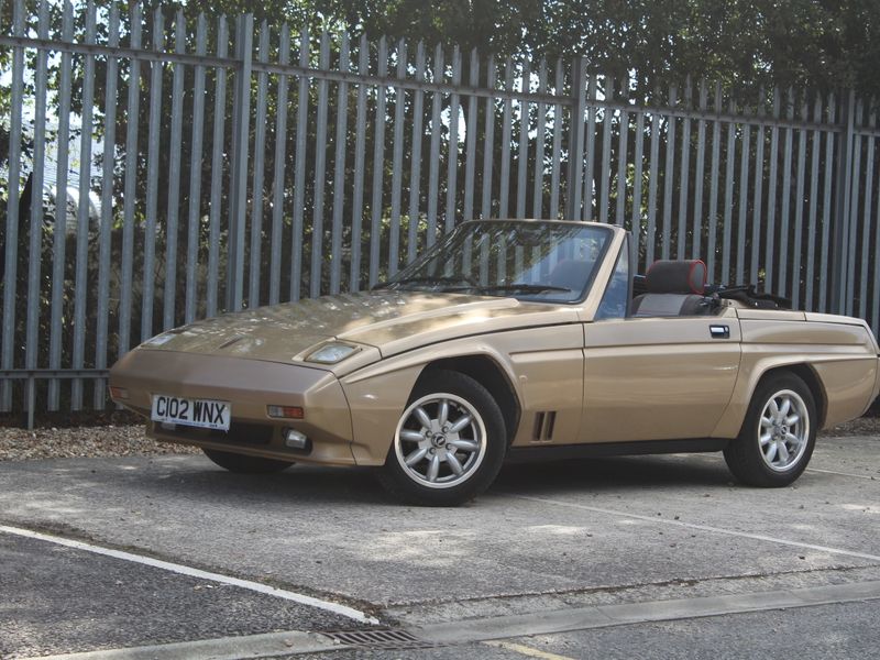 Finished in Titanium Gold with a black soft top over a cloth interior