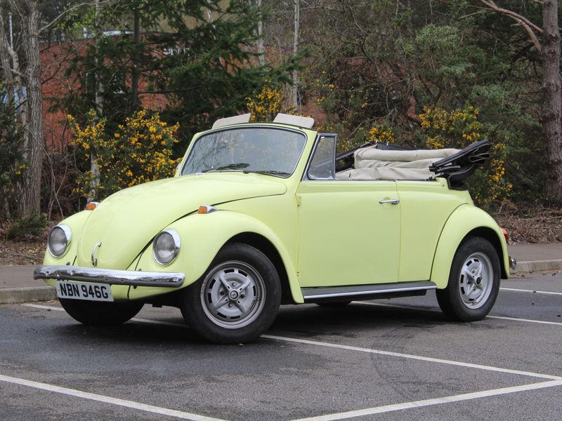 Finished in Pale Yellow with a Black soft top over a Black leather interior