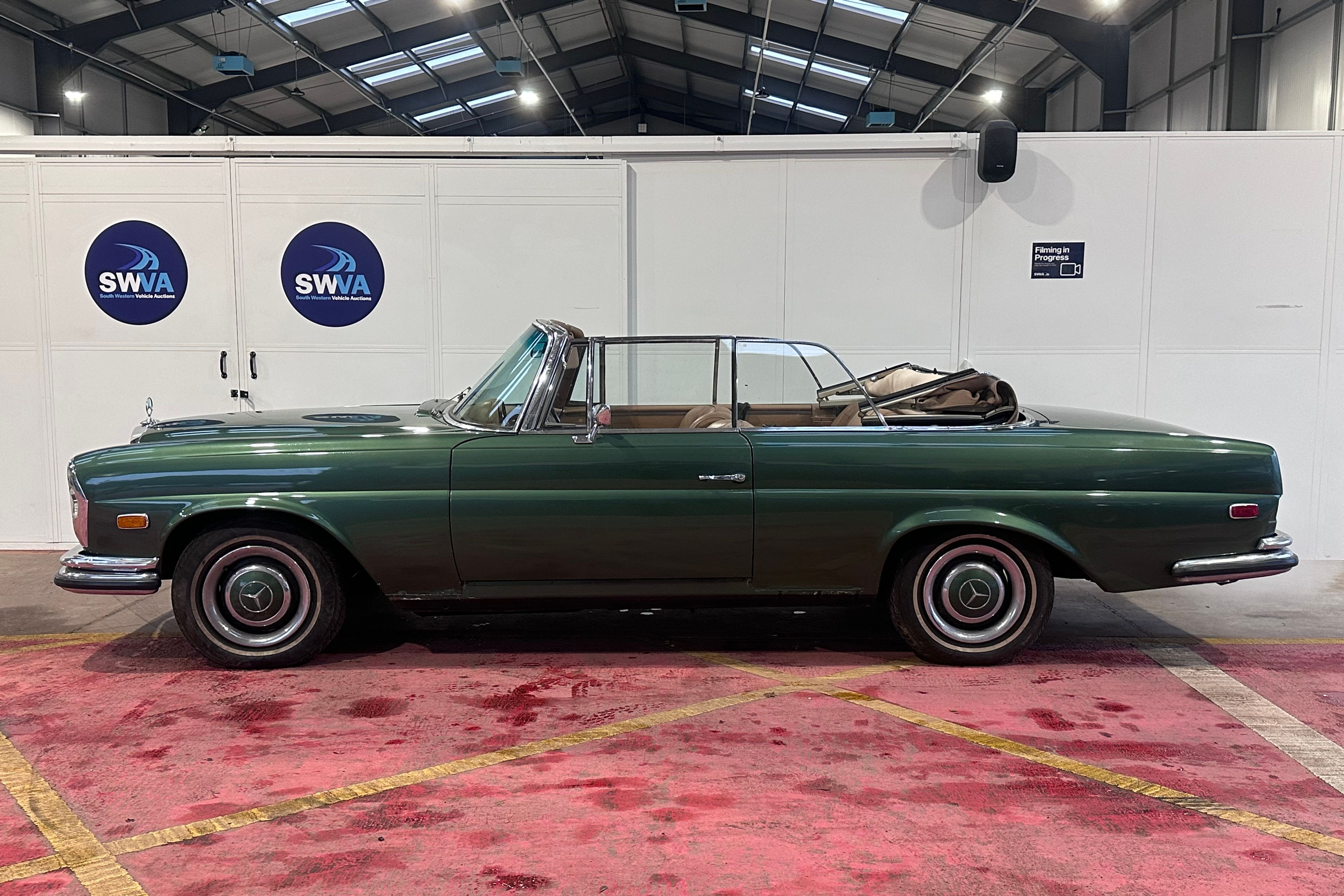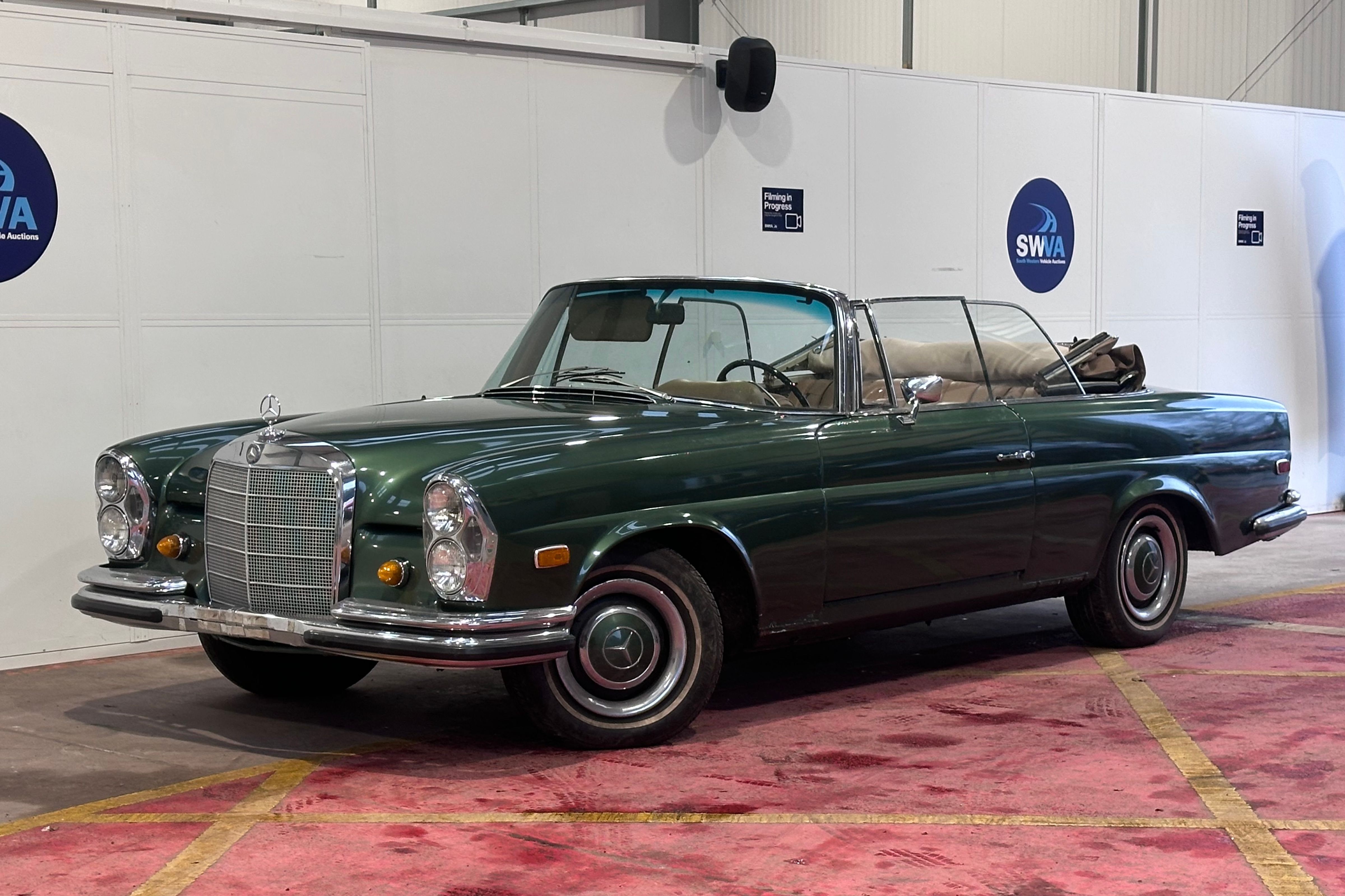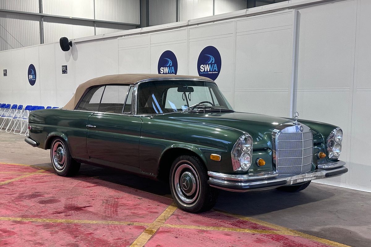 A handsome and increasingly sought-after 1968 Mercedes-Benz 250 SE Cabriolet, offered here as a left-hand drive example of the elegant W111 series. Finished in Light Green Metallic over a Tan leather interior with a matching Tan mohair soft top, this Californian-sourced Cabriolet presents as a very attractive proposition for a buyer seeking a usable classic with scope for light finishing.