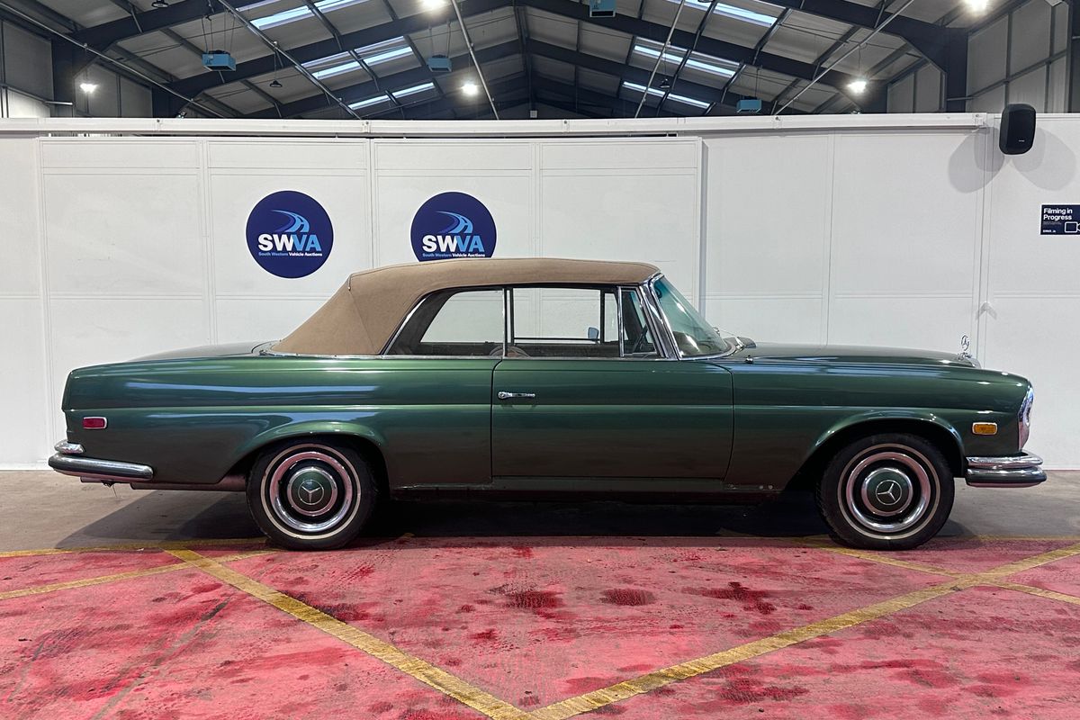 A rare and desirable open-top Mercedes that combines timeless Paul Bracq-era styling with classic Mercedes engineering. With an attractive colour combination this 250 SE Cabriolet represents an excellent opportunity for an enthusiast or collector looking for a usable classic with light recommissioning and finishing potential—ideal for summer touring once completed.