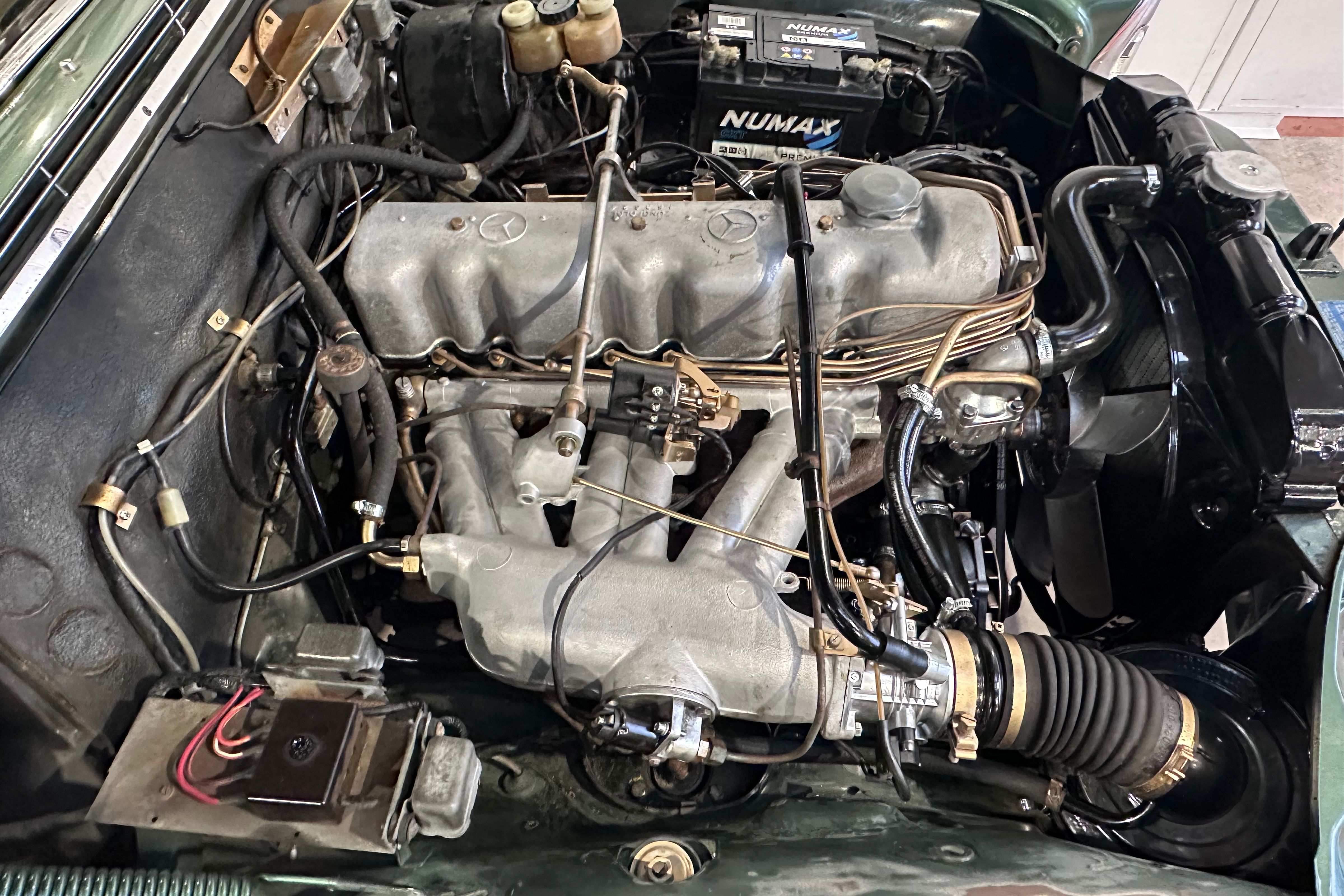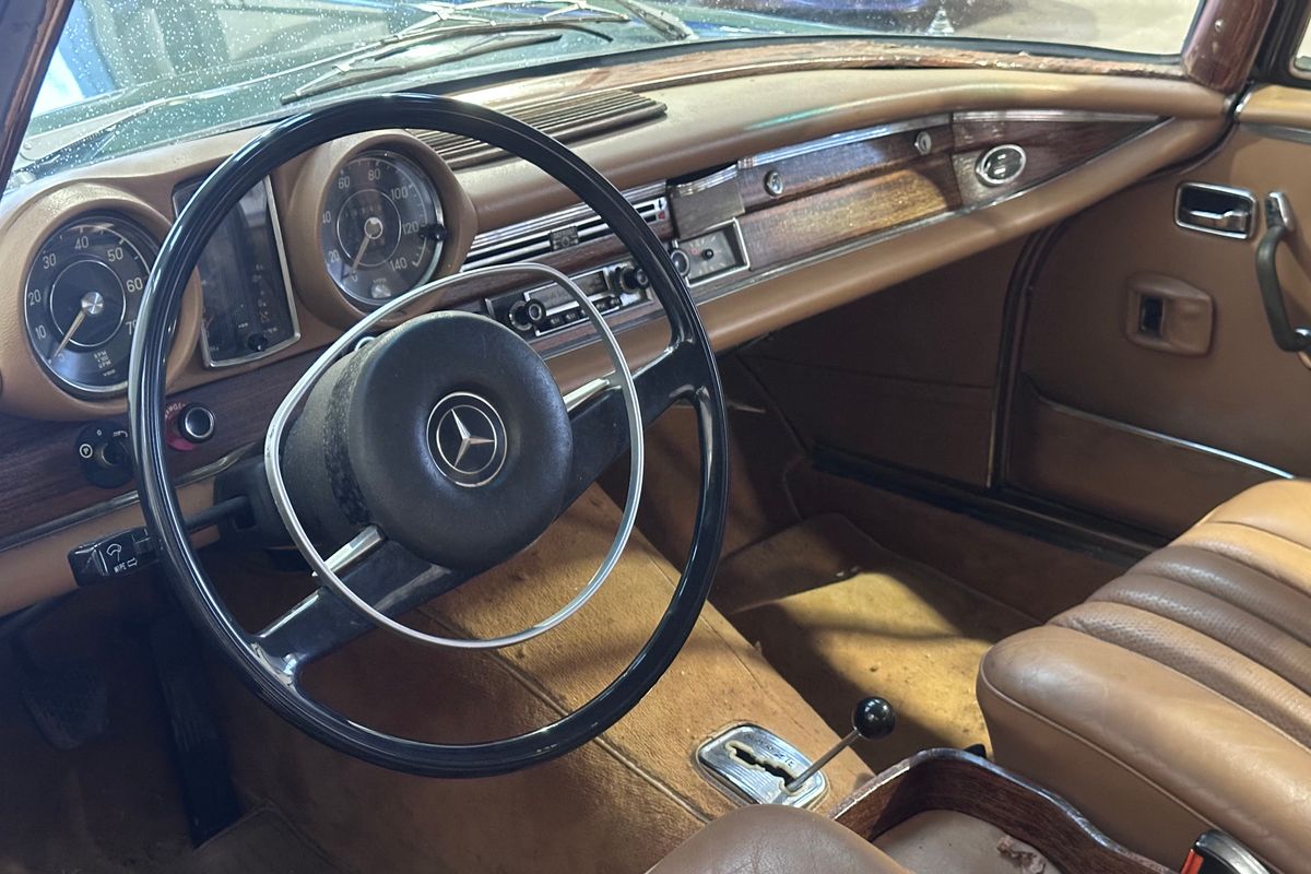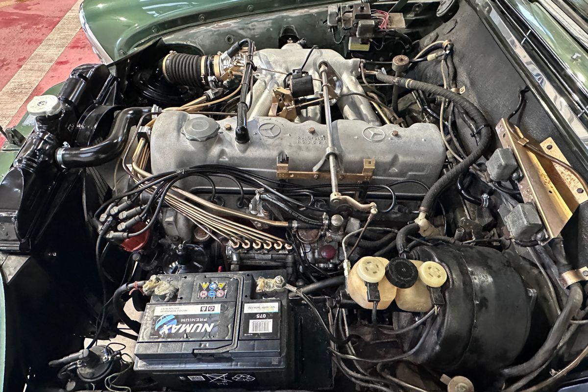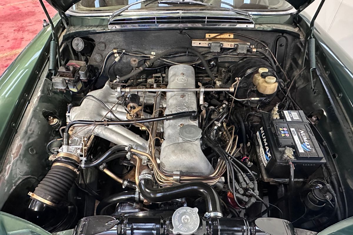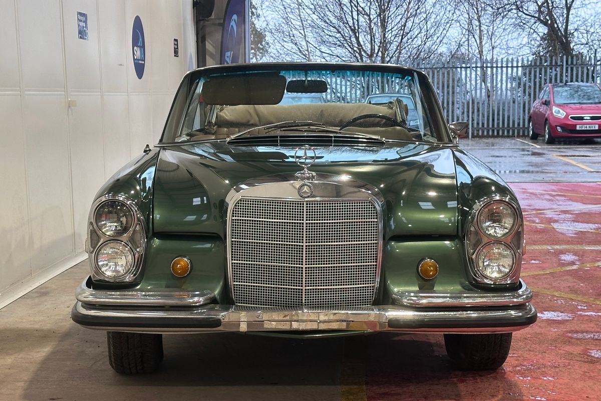 The Mercedes‑Benz W111 range represented Mercedes-Benz’s flagship luxury offering of the era, with the two-door coupé and cabriolet variants widely regarded as some of the most elegant designs of the 1960s. The 250 SE, introduced in late 1965, replaced the earlier 220 SE and brought with it the mechanically fuel-injected 2.5-litre M129 straight-six engine producing around 150 hp. In automatic form, as fitted here, performance was refined rather than sporting, with smooth power delivery, a top speed of approximately 117 mph and effortless long-distance capability. Subtle updates included 14-inch wheels, revised hub caps and braking improvements derived from the later W108 models.