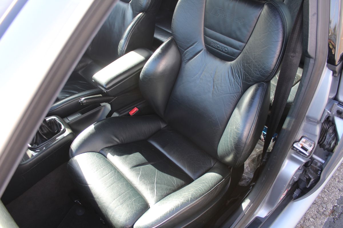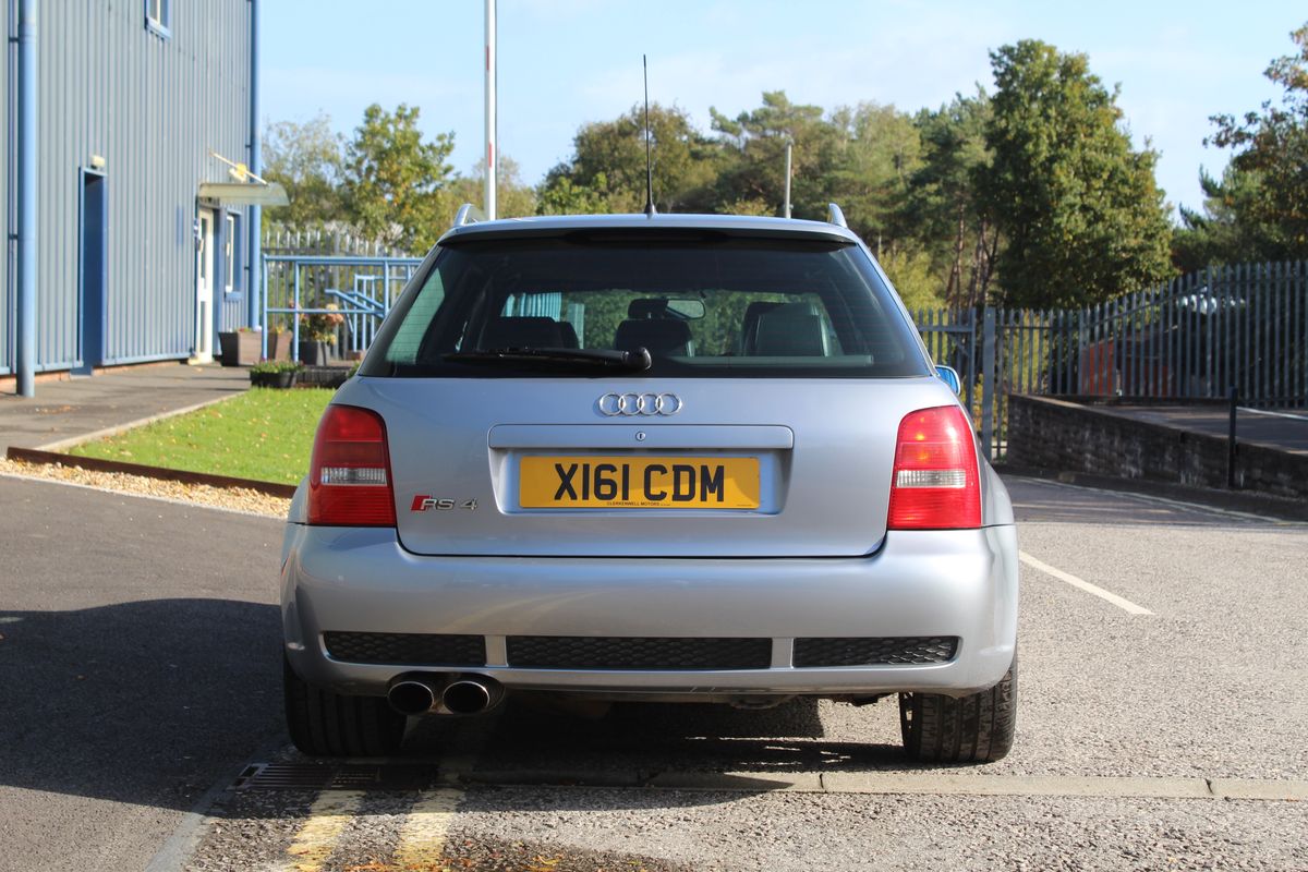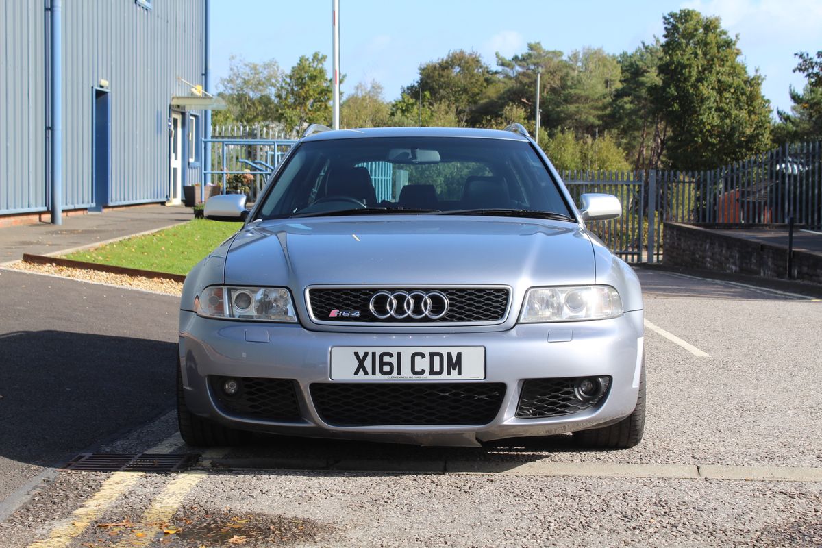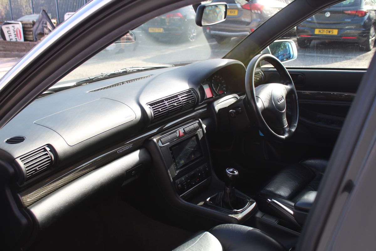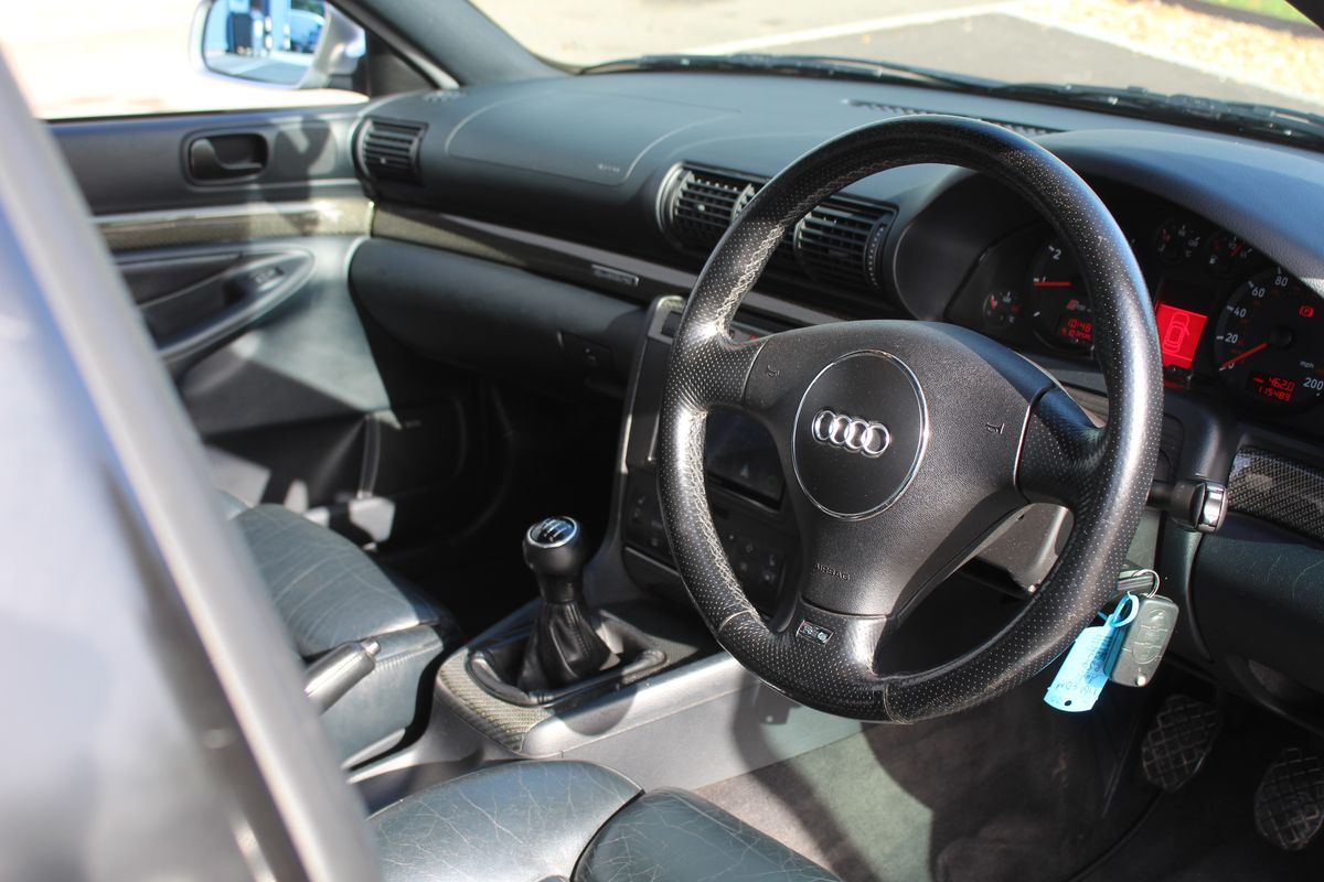A superb example of the first-generation RS4, finished in Audi Avus Silver Metallic over a Black leather interior. An aftermarket touchscreen head unit brings modern functionality to the otherwise original and well-kept cabin.