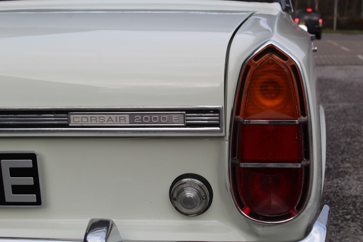 The Corsair range was revised in September 1965, gaining an improved dashboard and better interior ventilation while adopting the new Essex V4 engine. Early V4 models received mixed reviews, but in January 1967 a significantly improved 2.0-litre version was introduced. By April 1967, the 2000E replaced the V4 GT, offering enhanced refinement, improved specification and greater overall appeal. The 2000E represented the pinnacle of the Corsair line-up — combining executive styling cues, upgraded trim and the improved Essex V4 engine. Today, due to production numbers of the 2000 E standing at just 31,566 surviving examples are far less common than contemporary Cortinas, making the 2000E a distinctive and collectible alternative for Ford enthusiasts.