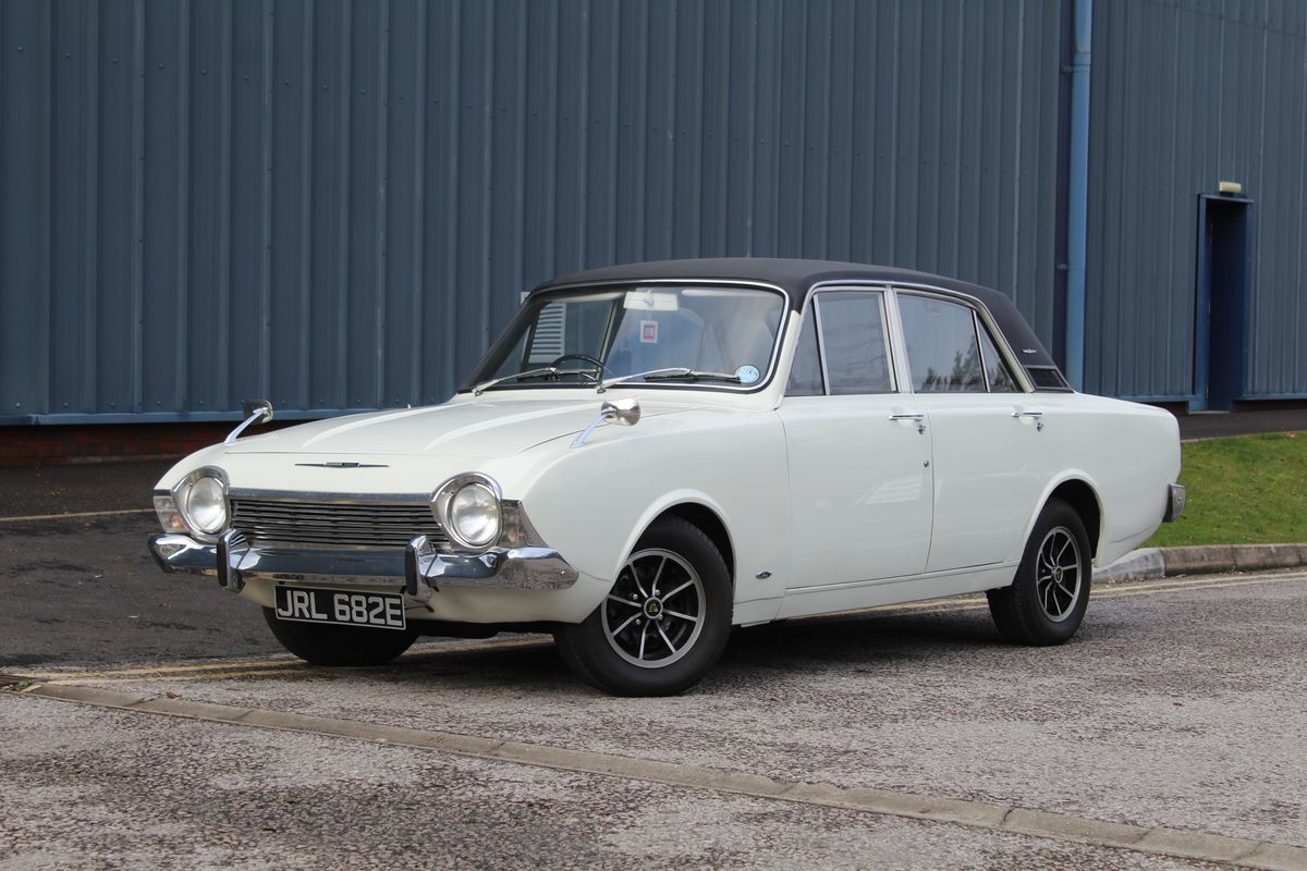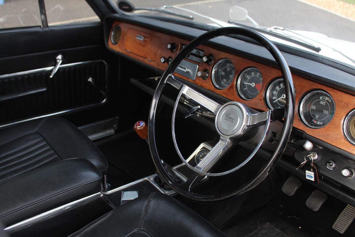 A lovely example of the ever-distinctive 1967 Ford Corsair 2000E, fitted with the desirable 2.0-litre Essex V4 engine and presented in range-topping ‘E’ trim. Finished in White with a contrasting Black vinyl roof over a Black leather interior, this Corsair has real period presence and benefits from both restoration and mechanical investment in recent years. Owned by The Vendor for the last three years, it represents an increasingly rare opportunity to acquire one of Ford’s more rare and characterful executive saloons of the 1960s.
