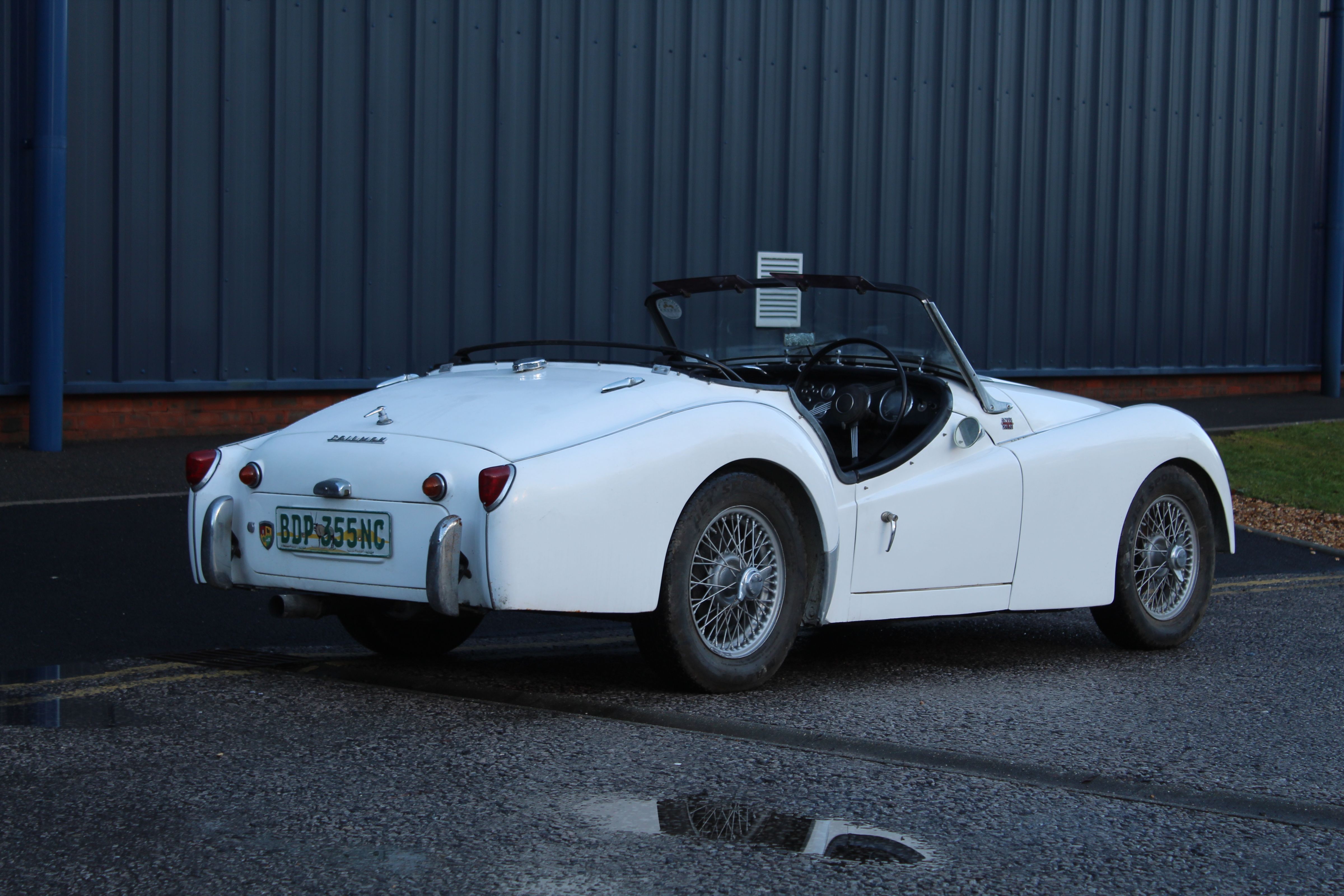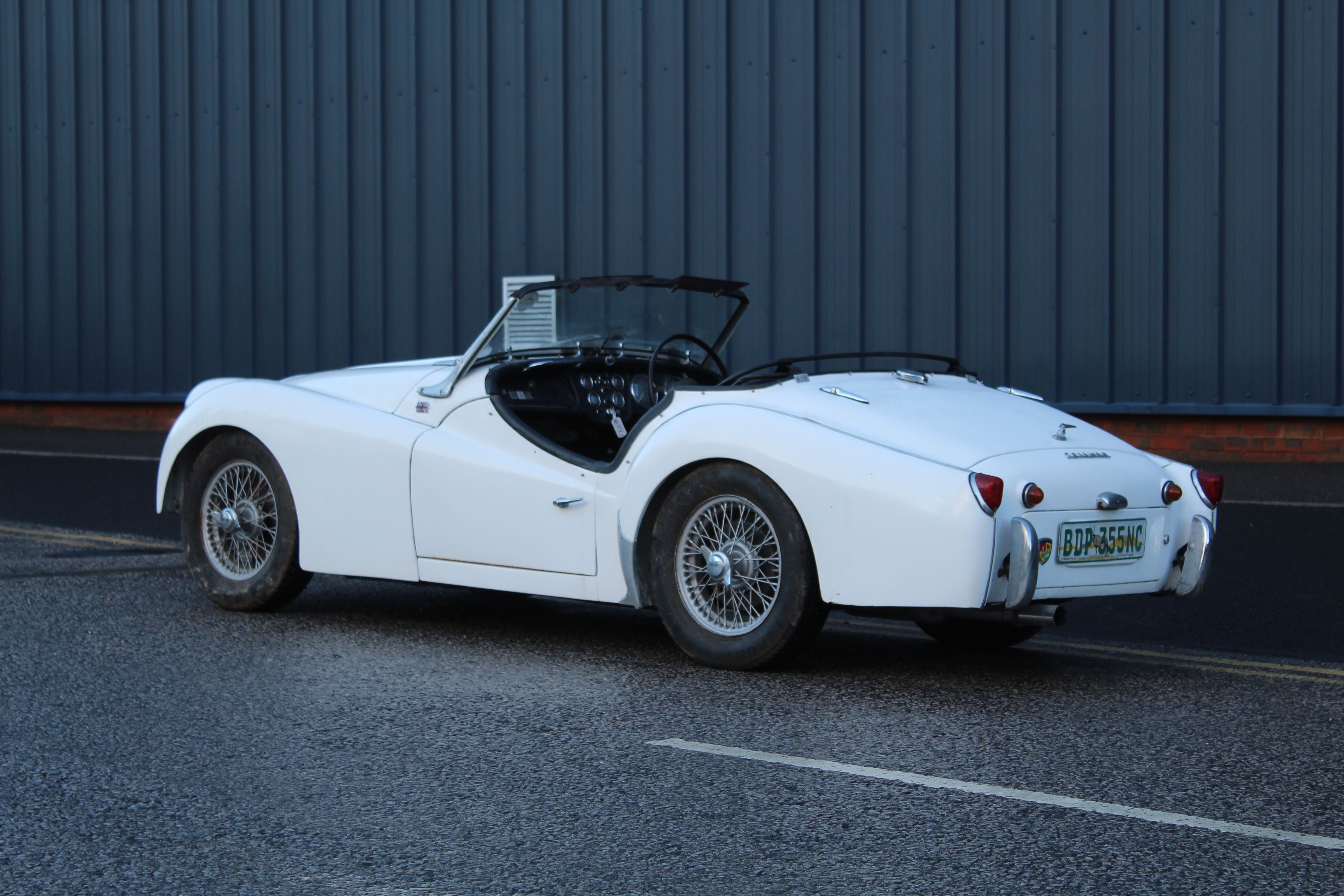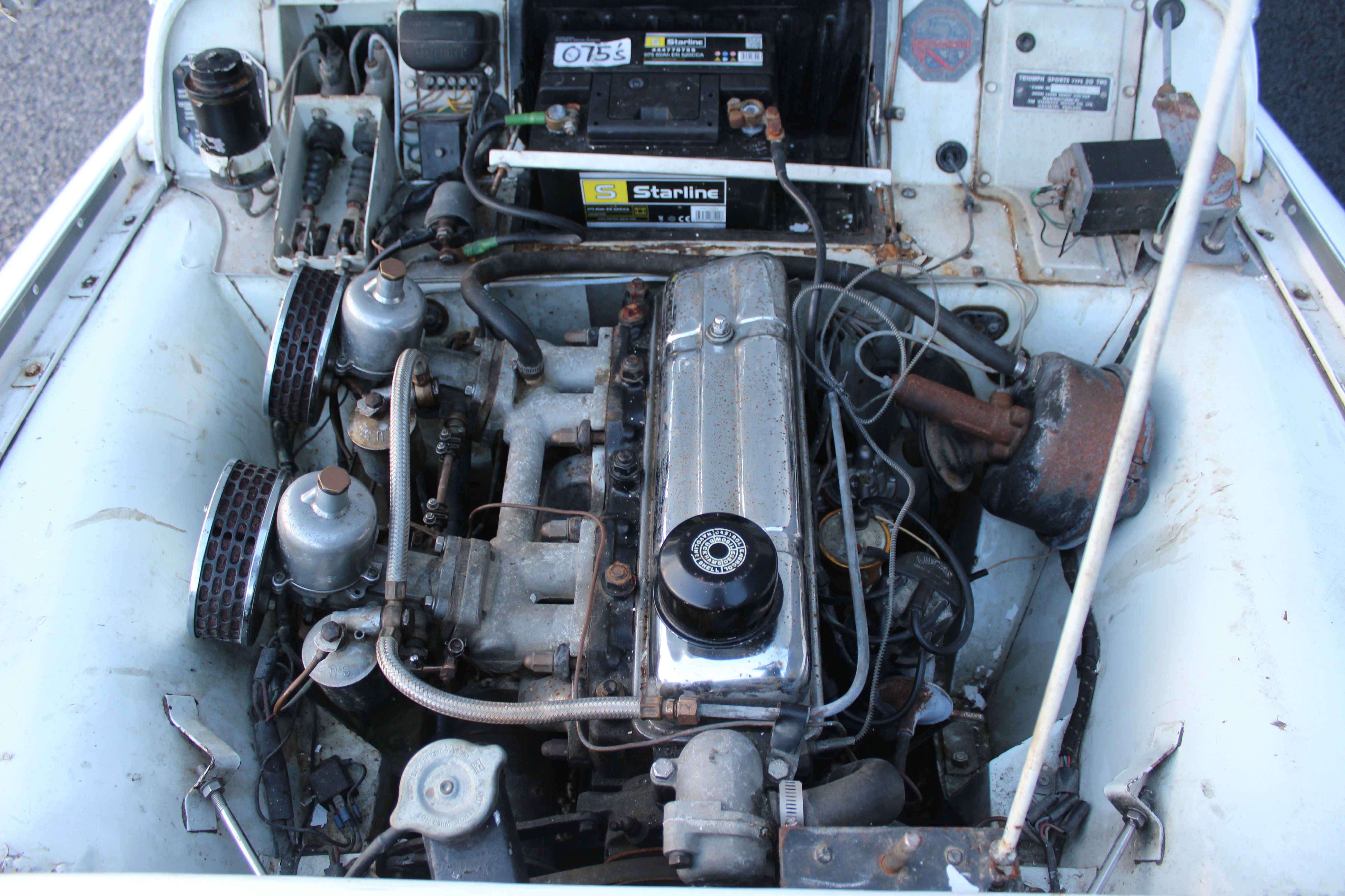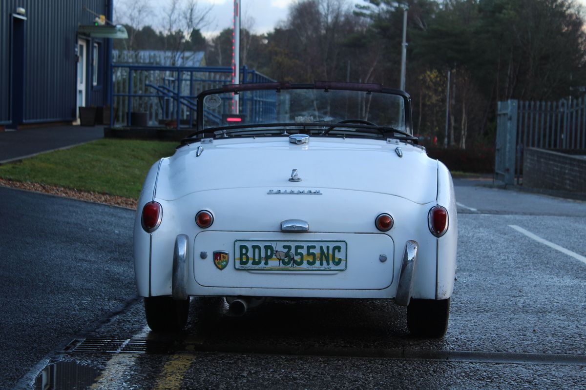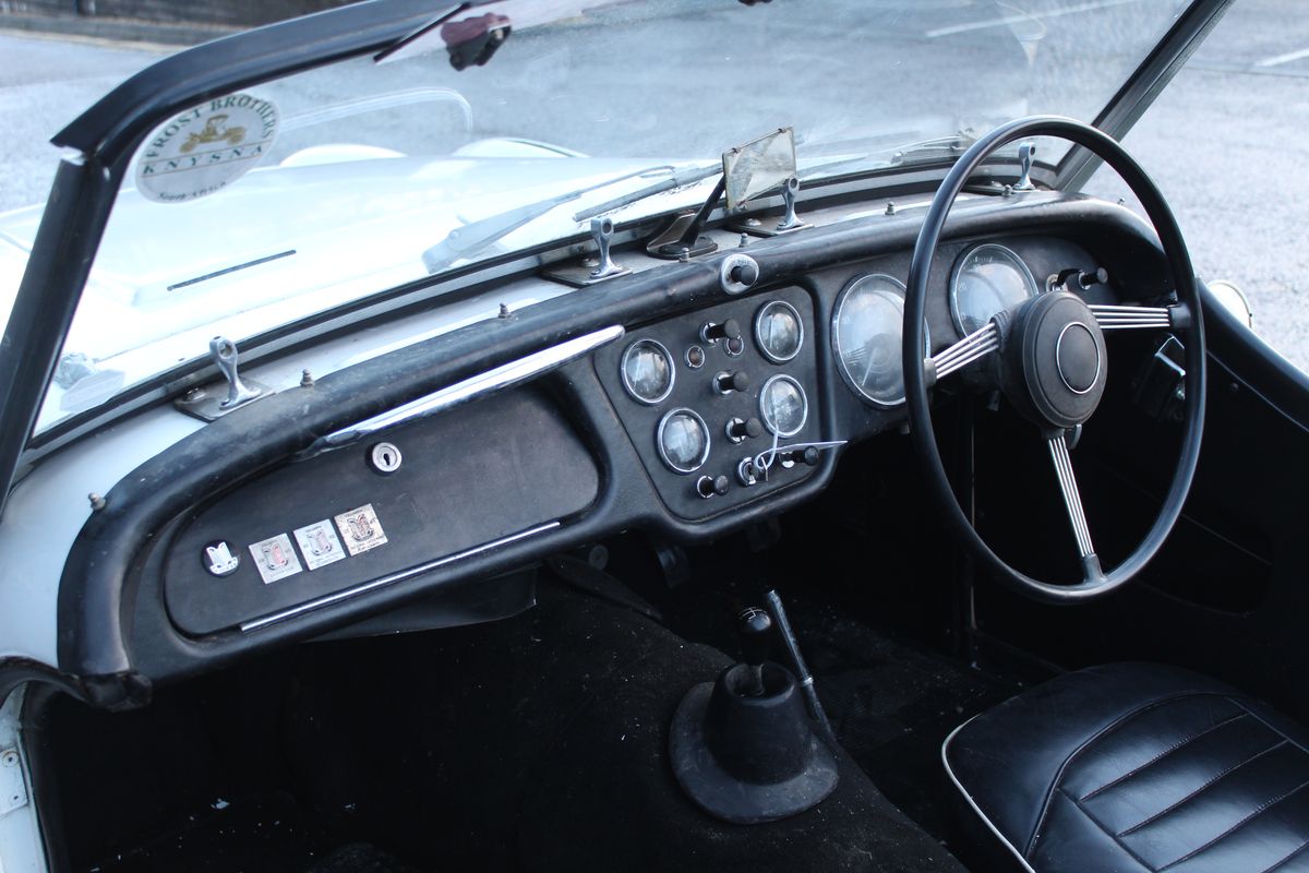 A decent, usable example of the ever-popular Triumph TR3A, offered in White over Black leather with Black wet-weather gear. This is a South African car and is NOT UK REGISTERED. As there is no information available regarding import duty, the vehicle is being sold as spares and repairs. The buyer is fully responsible for establishing any outstanding duty liabilities and the feasibility of UK registration.