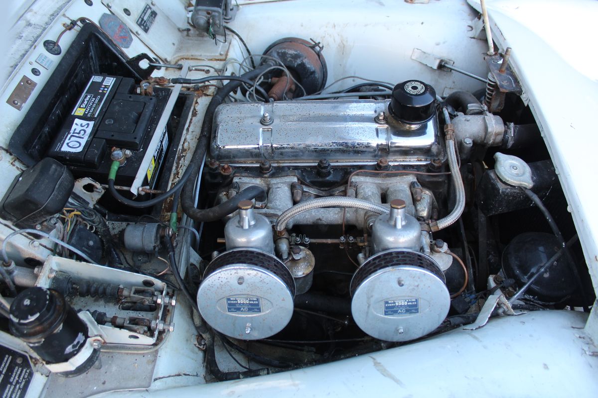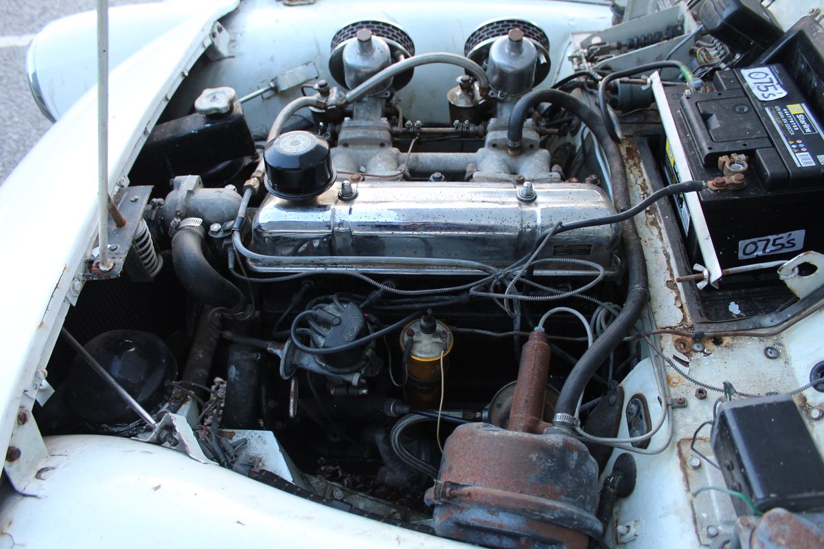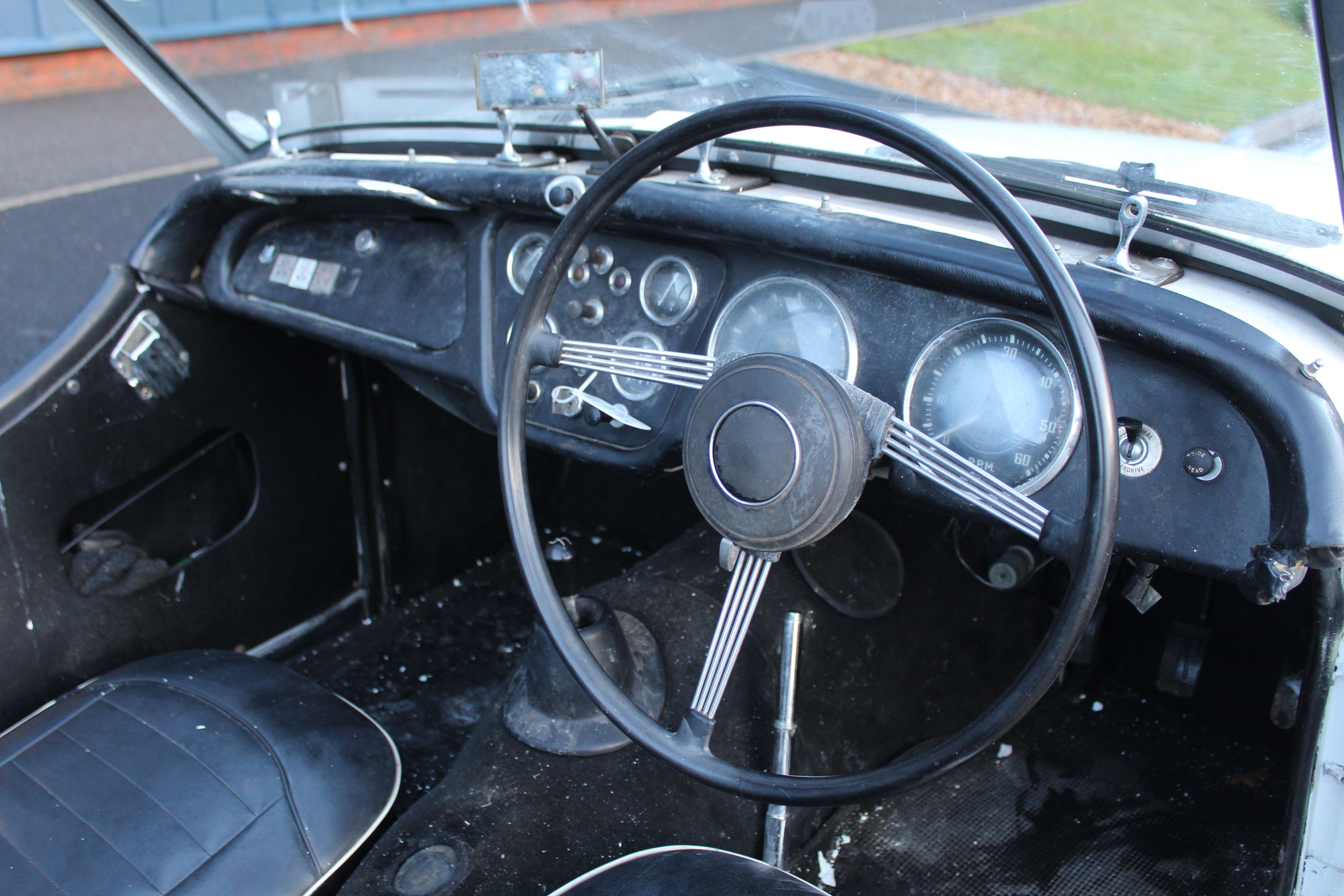 The car presents as an honest example overall that is running and driving. Supplied with full wet-weather equipment, including side screens, hood frame and soft top. Interior trim is finished in Black leather and complements the exterior well. As with any classic of this age—particularly one offered under spares/repairs terms—inspection of the vehicle is recommended.