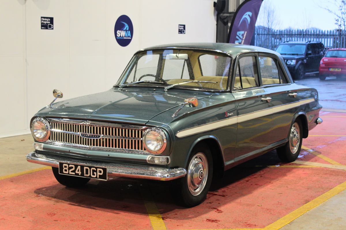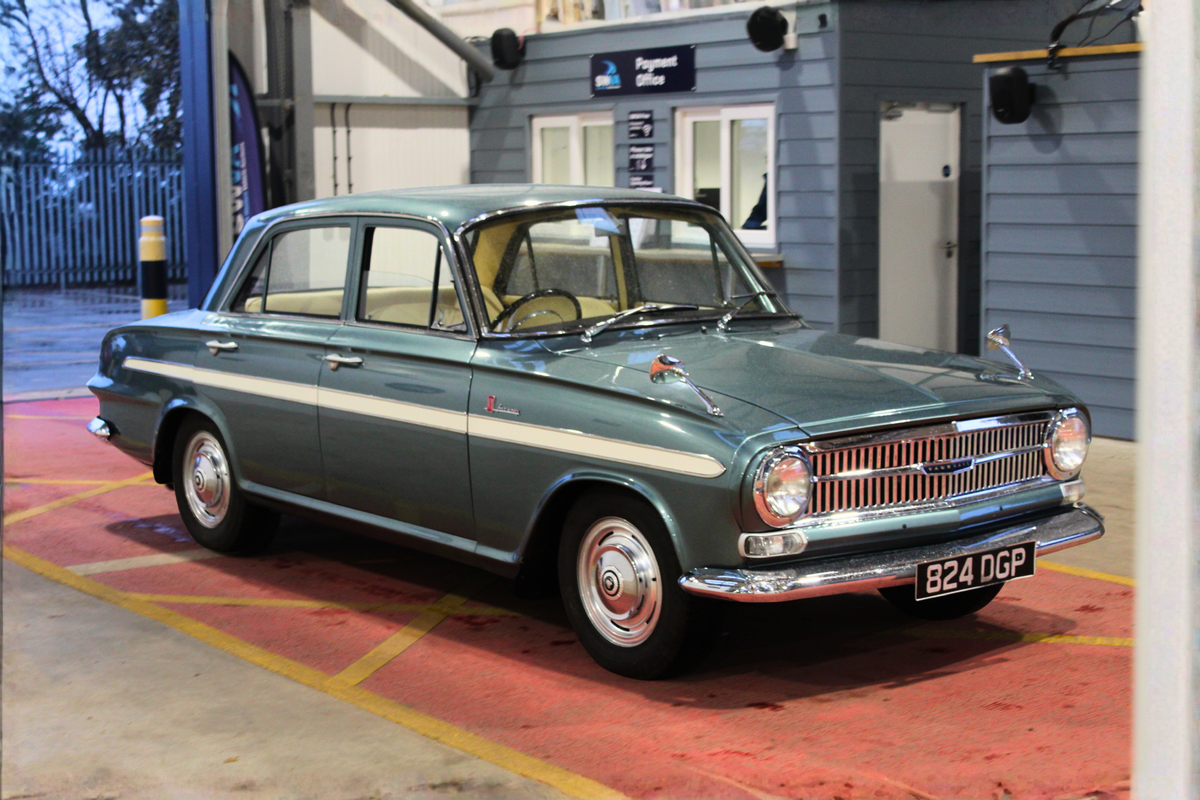 The FB-series Vauxhall, announced on 14 September 1960 and produced until 1964, featured cleaner styling and notably improved rust protection over earlier models. The sporting VX 4/90, introduced in October 1961, represented the performance flagship of the range. Power came from a 1.5-litre or 1.6-litre engine fitted with twin carburettors, a taller alloy cylinder head, high-compression expansion-controlled pistons and a nitrided EN19B steel crankshaft, producing 71 bhp. Servo-assisted front disc brakes (shared with the Cresta), a four-speed all-synchromesh gearbox, full instrumentation including a mechanically driven tachometer, individual front bucket seats and distinctive exterior detailing set it apart from the standard FB Victor. The VX 4/90 was offered only as a saloon and is now one of the rarest post-war sporting Vauxhalls.