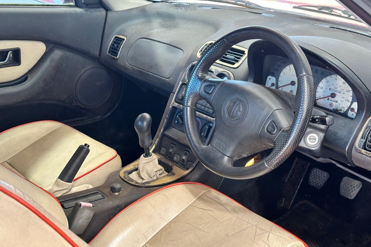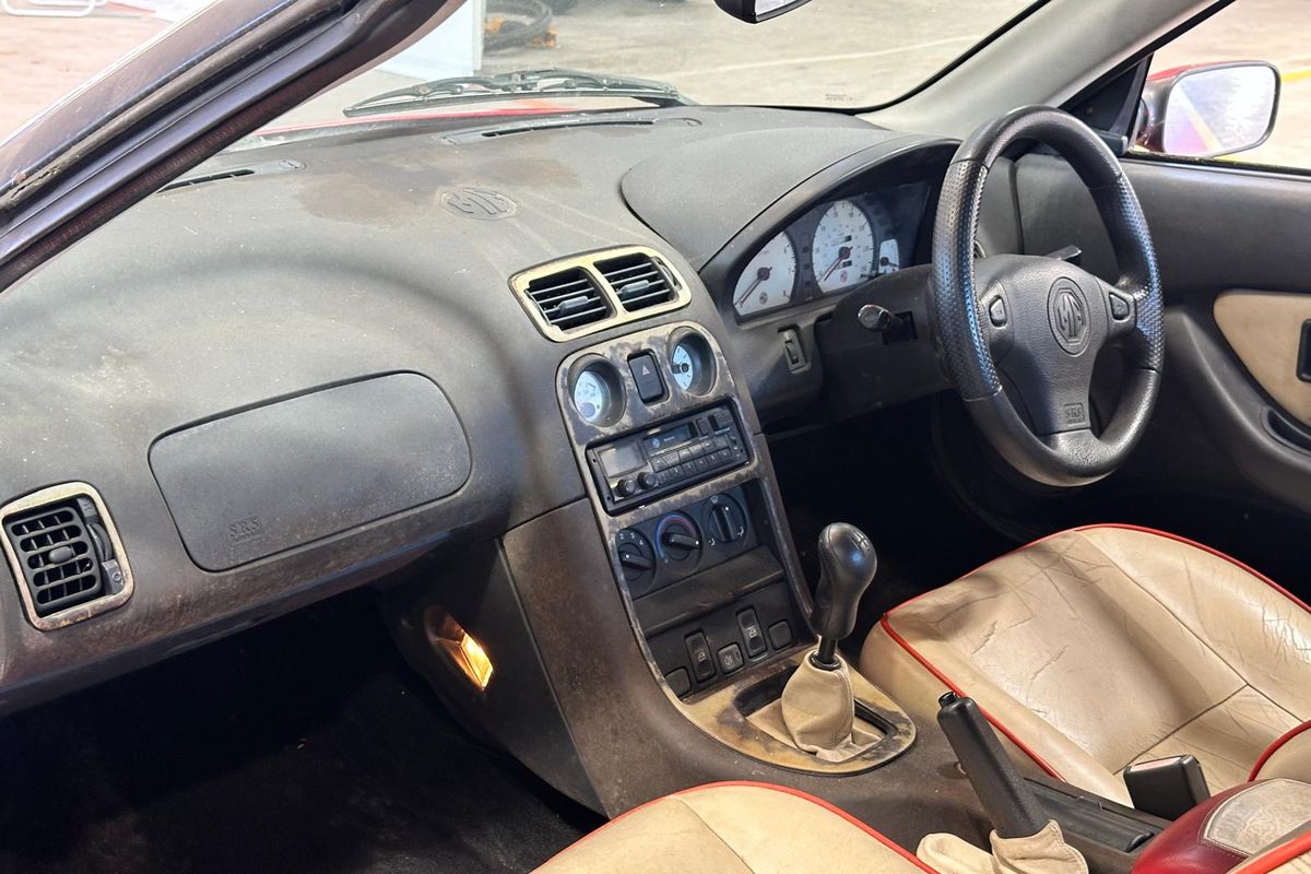 A project example of MG’s mid-engined roadster, this 1996 MGF is finished in Red, with a Silver detachable hard top and a Cream leather interior with Red piping.
