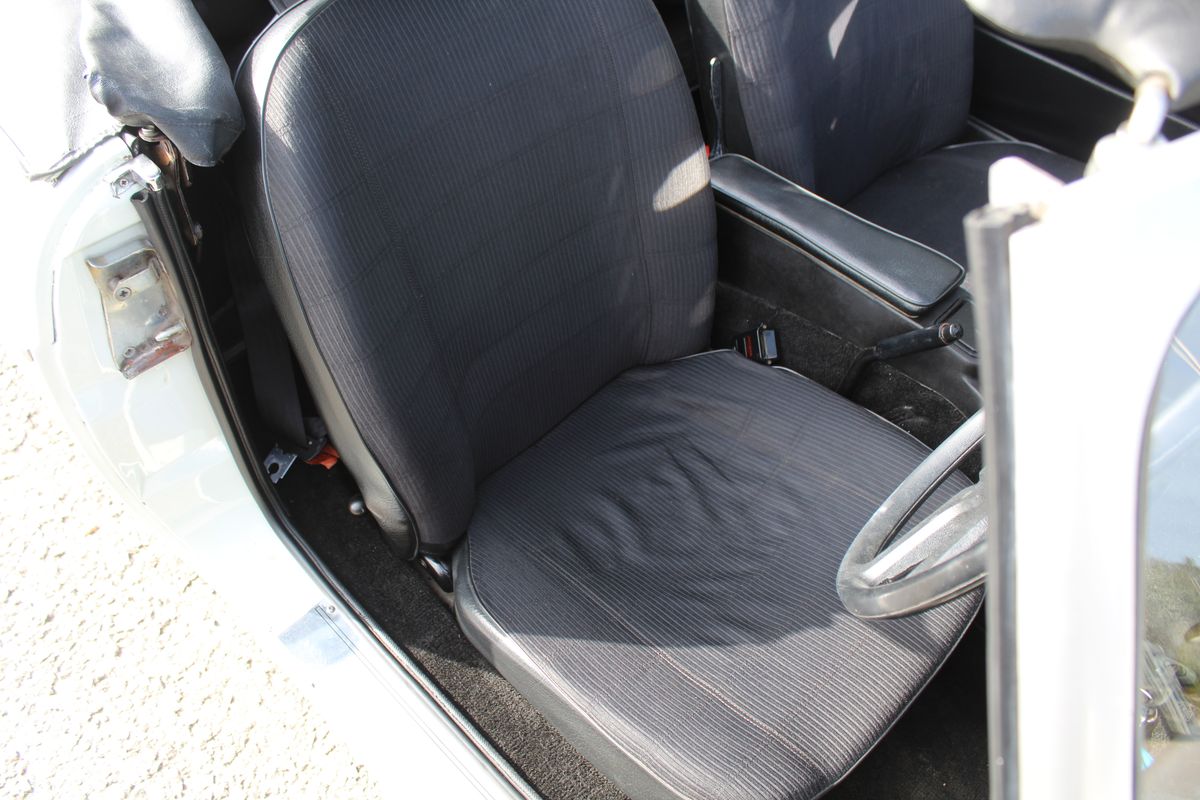 This 1977 MG B Roadster presents beautifully in White with a Black soft top, complemented by a cloth interior. Retaining its original Rostyle wheels, the car offers the later looks of the MGB being equipped with rubber bumpers and also benefits from subtle but effective upgrades.