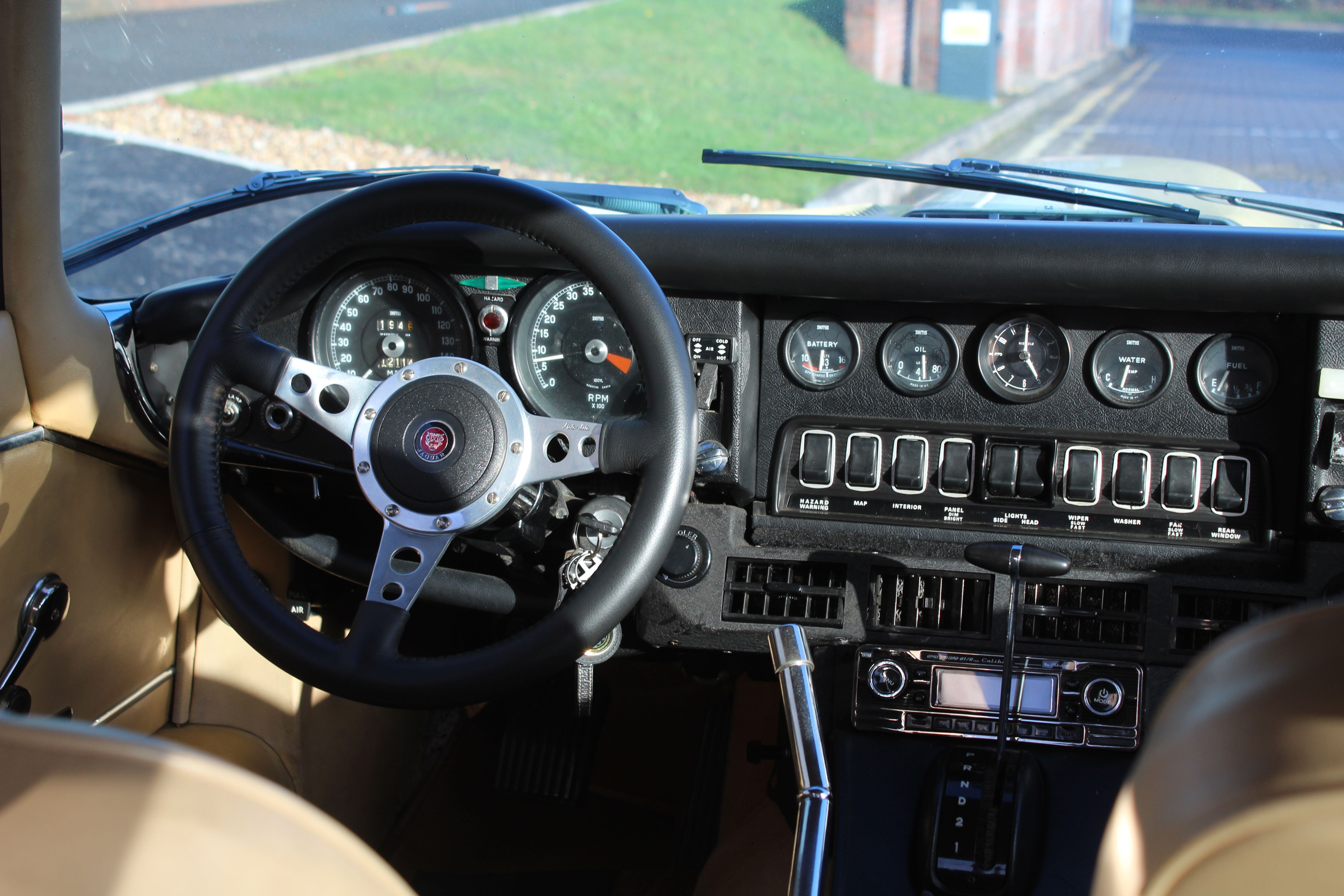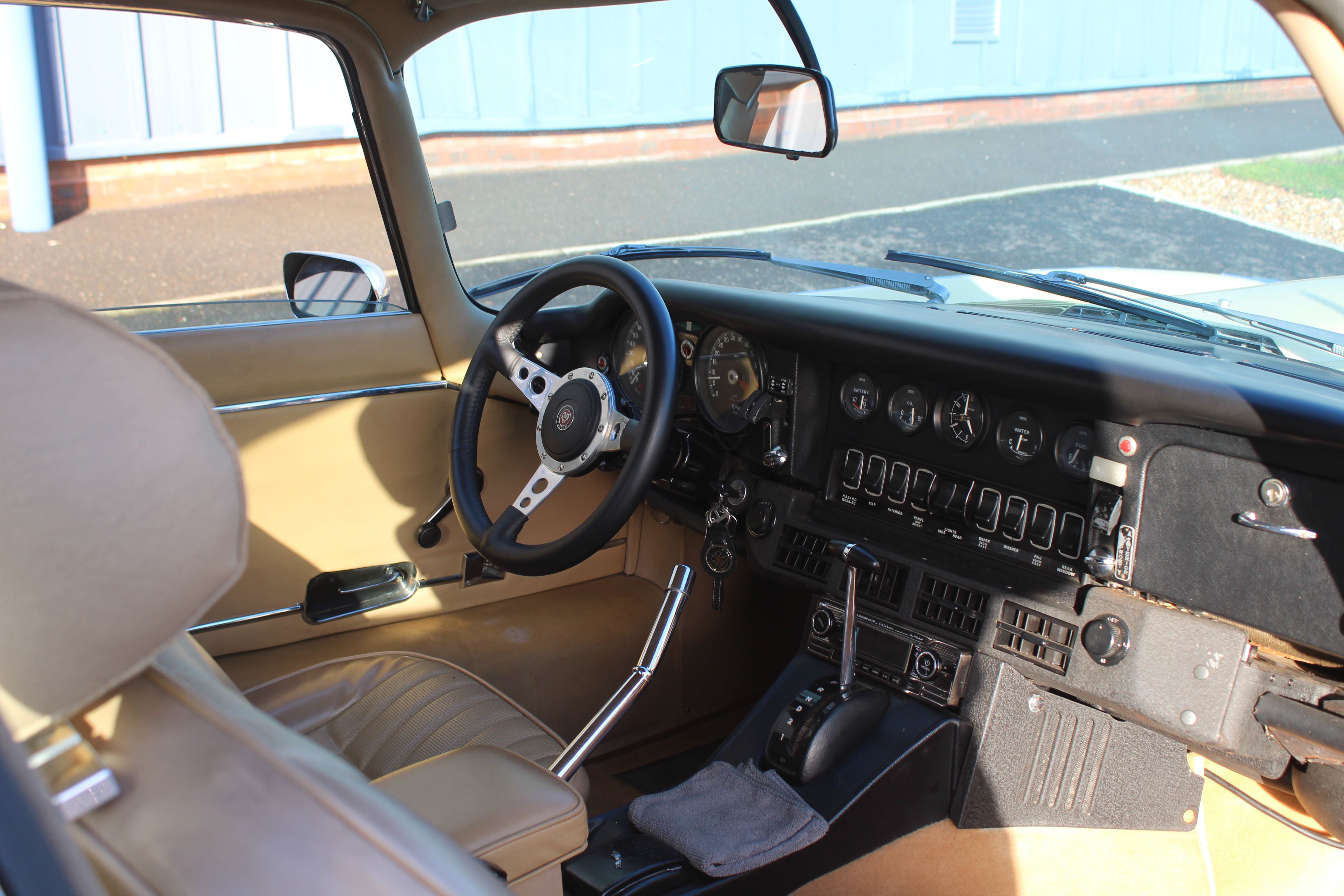 This E-Type has benefitted from significant mechanical and cosmetic investment in recent years. In 2022/23 it received major works including new Dunlop SP Sport Radials, temperature sender, fan switch, full service (fluids, filters, plugs), new ignition components (leads, rotor arm, distributor cap), new rear lights, horn, thermostat, gearbox sump gasket, tuned carburettors, choke cable, fuel hose, fuse box and washer pump—totalling £6,542.24. A further £952.18 was spent in April 2025 to refine running performance. It has also been fitted with a new torque converter and a complete carpet set this year. Overall, it presents as a well-maintained and mechanically sorted example.