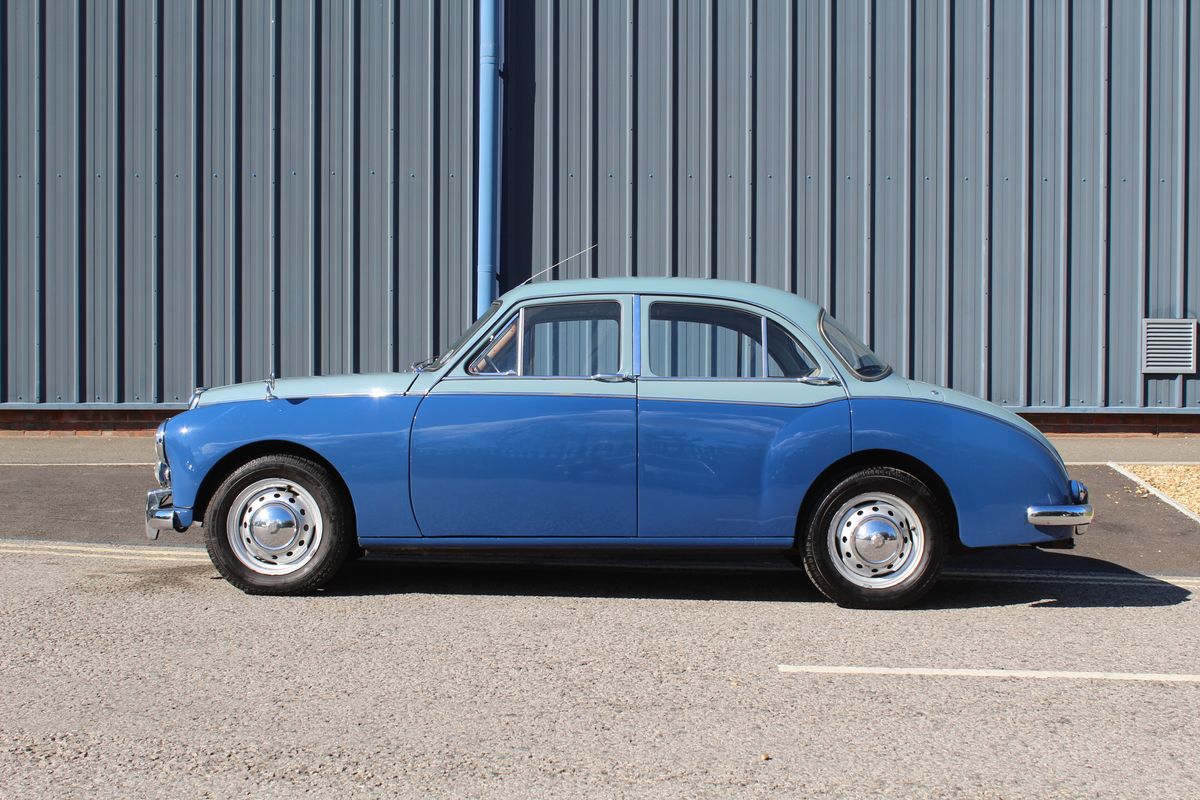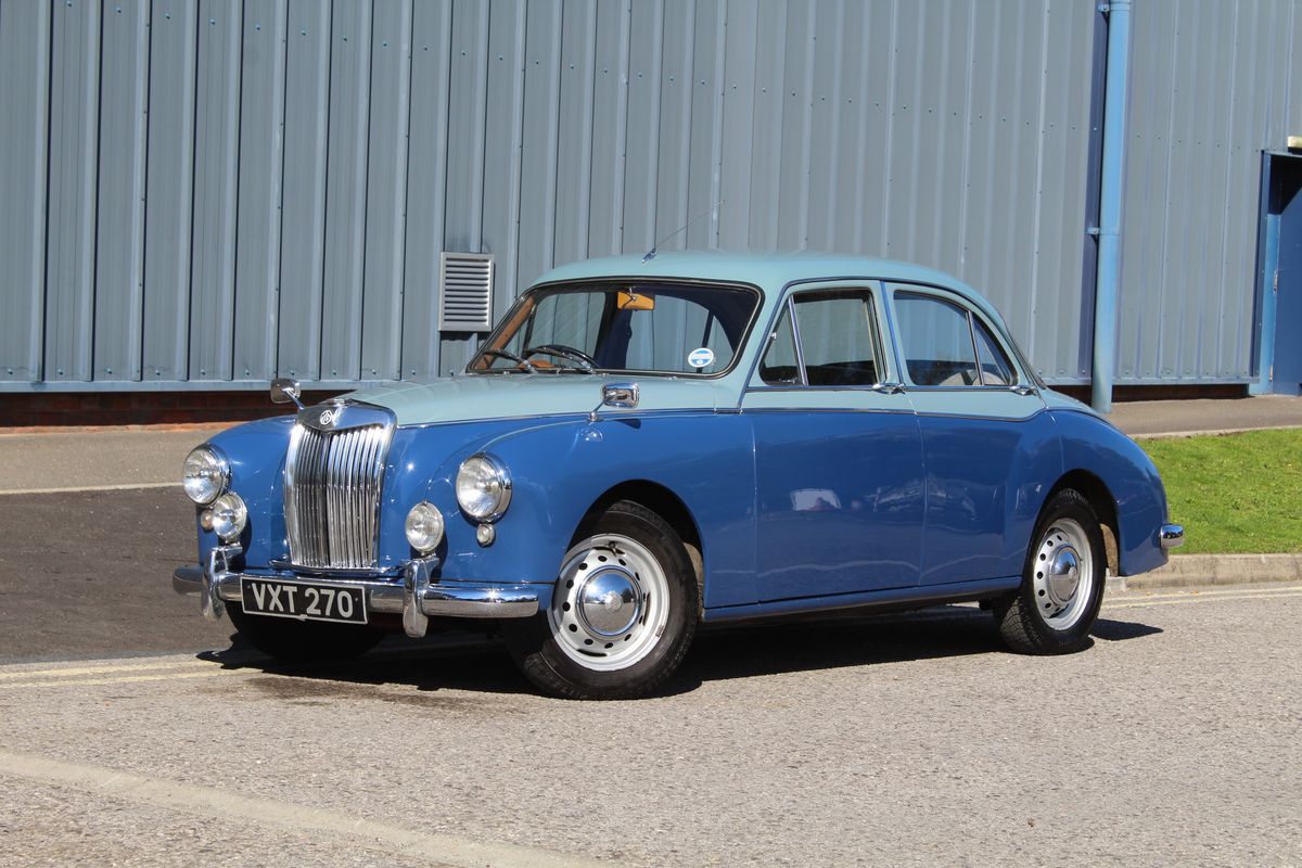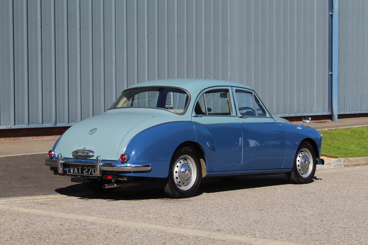A beautiful example of MG’s post-war saloon, this 1958 Magnette ZB Varitone presents in two-tone Steel Blue over Mineral Blue, complemented by a Beige leather interior.