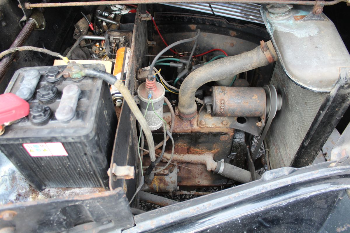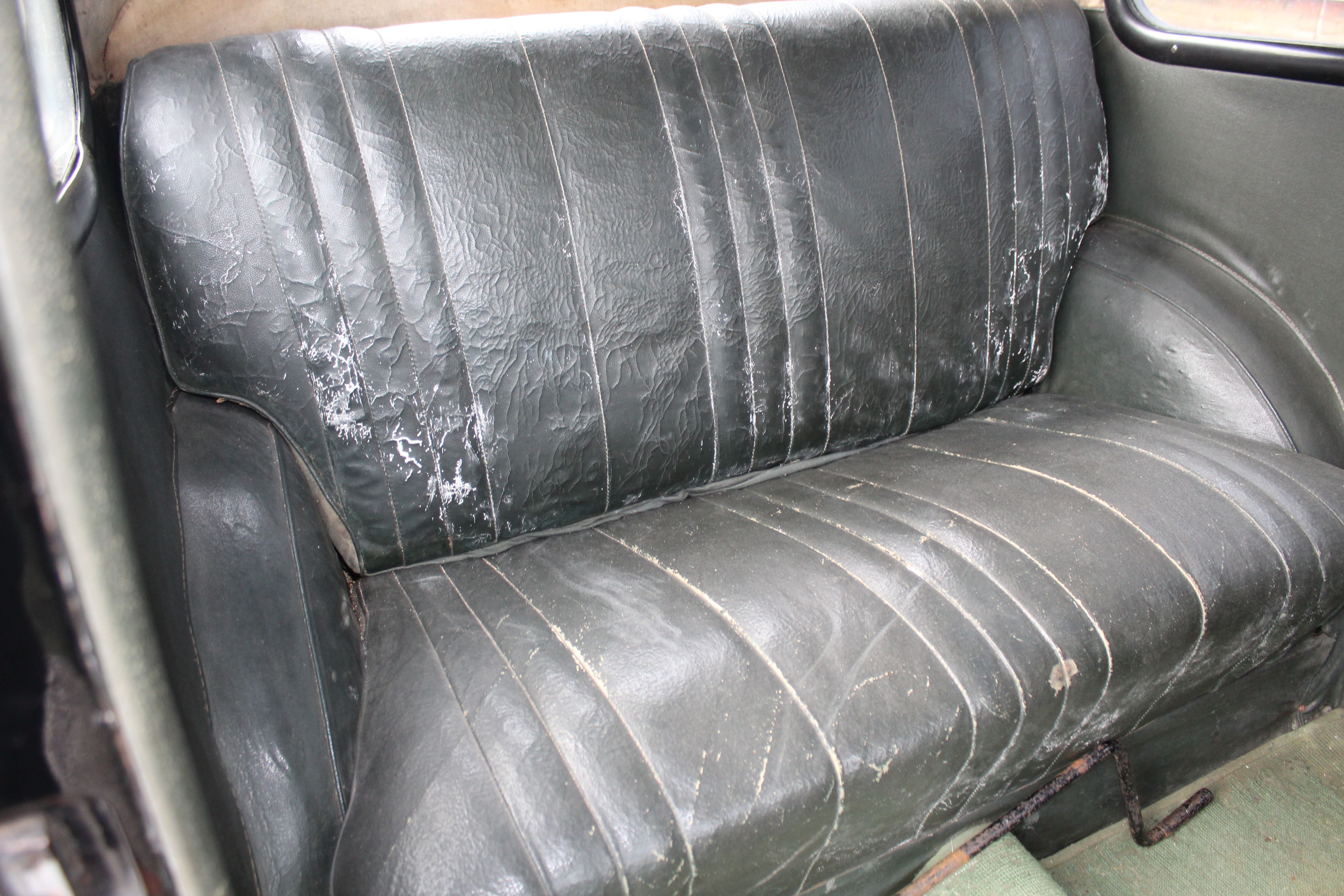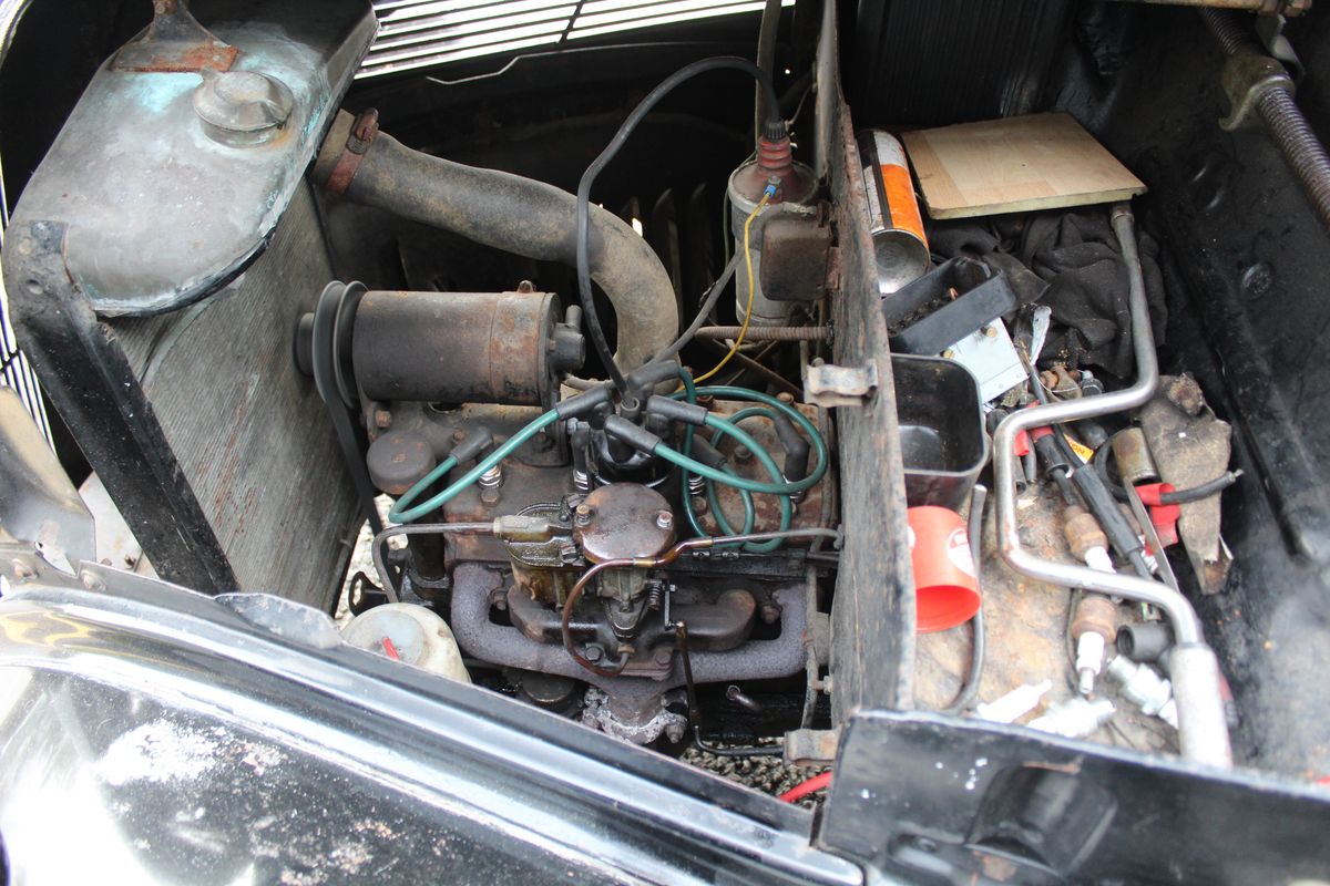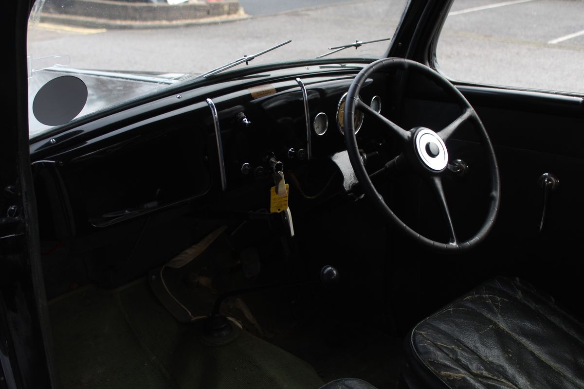The car presents very much as an honest original, showing age-related blemishes to the bodywork but remaining solid and full of character. The interior retains its period Brown leather, adding to the car’s authentic pre-war feel. This is not a restored example, but one that wears its history proudly, making it especially appealing to collectors who value originality over over-restoration.