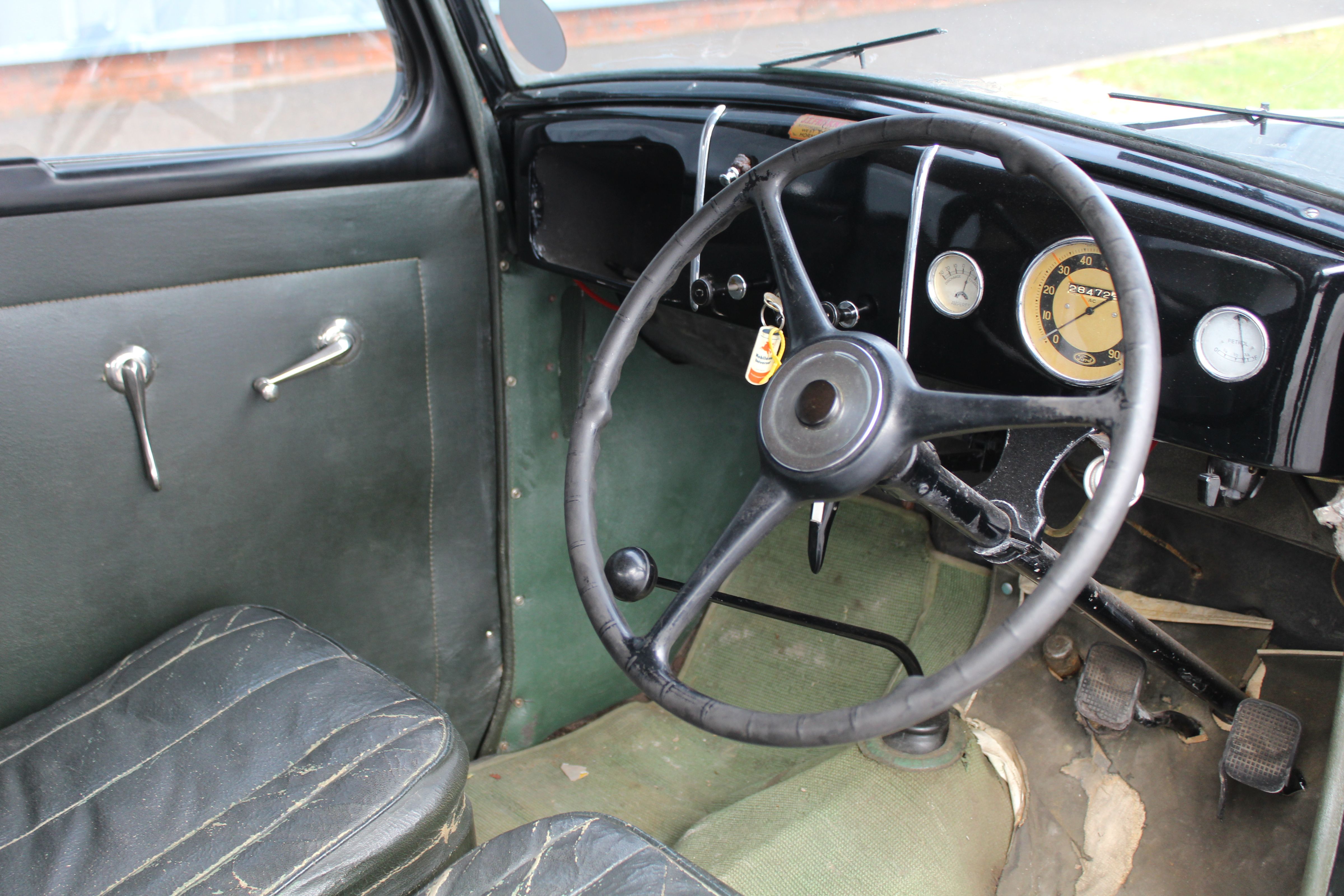 A wonderful pre-war Ford 7Y Tudor, offered in very original condition and carrying a story that few cars of this era can match. Finished in classic Black over a Brown leather interior, this 1939 example has been in the same family for the last 17 years and has only recently been transferred into the Vendor’s name following the passing of his father. With charming patina throughout and a truly exceptional paper trail, this is a rare opportunity to acquire a genuine, unspoilt survivor from the final months before the outbreak of the Second World War.