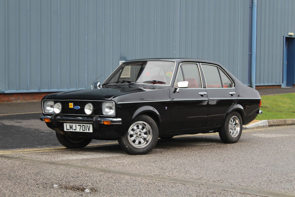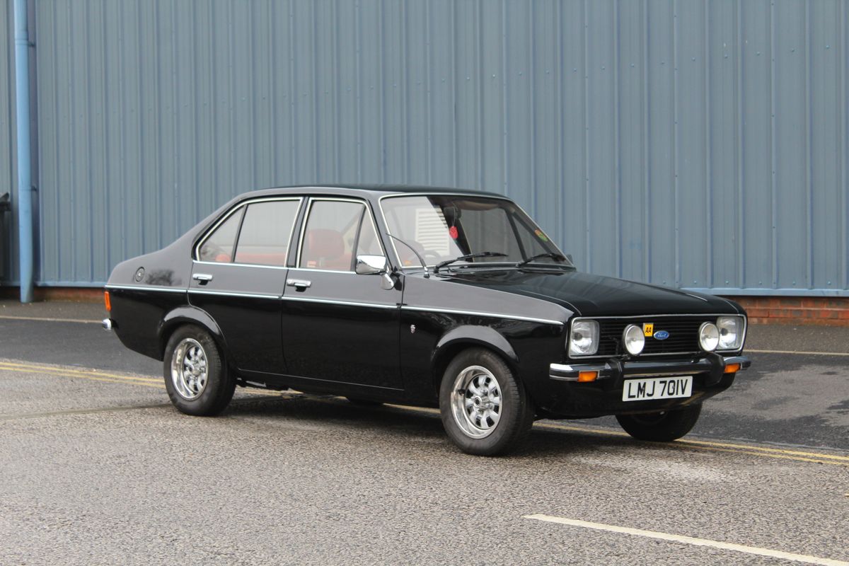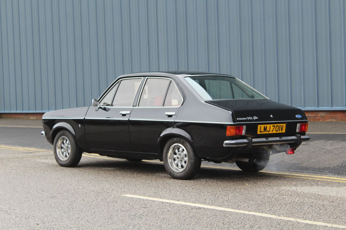 The Ford Escort was one of the most successful small family cars produced by Ford of Europe, manufactured between 1968 and 2004. The Mk II Escort, introduced in January 1975, featured a squarer and more modern design compared with its predecessor while retaining much of the same mechanical architecture. Developed jointly by Ford of Britain and Ford of Germany under the codename “Brenda,” the Mk II shared its floorpan and core structure with the Mk I but benefitted from updated styling and improved refinement. The Ghia trim level, produced from 1975 to 1980, represented the top of the range and featured a more luxurious specification, including velour upholstery, wood-veneer fascia, centre console, clock, tachometer, trip meter and additional chrome detailing. Powered by the lively 1.3 or 1.6-litre Kent engine, as found in this example, the Ghia offered both comfort and engaging driving dynamics.
